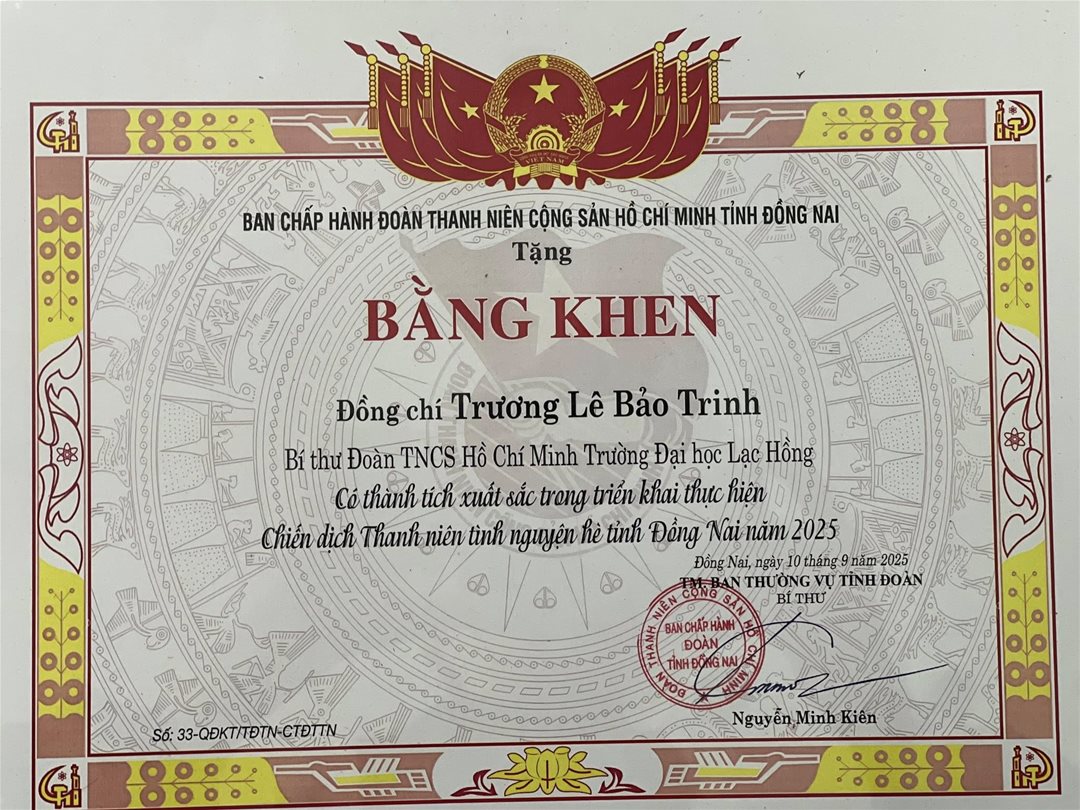 Mỗi thành tích được ghi nhận chính là minh chứng cho tinh thần cống hiến bền bỉ, góp phần viết tiếp hành trình phát triển vững mạnh của công tác Đoàn – Hội Trường Đại học Lạc Hồng