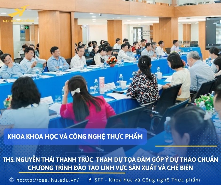 Tham dự buổi tọa đàm có PGS.TS. Nguyễn Anh Dũng – Phó Vụ trưởng Vụ Giáo dục Đại học, GS.TS. Trang Sĩ Trung, Chủ tịch Hội đồng thẩm định Chuẩn chương trình đào tạo, cùng lãnh đạo, chuyên gia và đại diện hơn 60 cơ sở giáo dục đại học trên cả nước. Đại diện Trường Đại học Lạc Hồng, ThS. Nguyễn Thái Thanh Trúc, Trưởng bộ môn Công nghệ thực phẩm, Khoa Khoa học và Công nghệ Thực phẩm đã tham dự và đóng góp ý kiến về chuyên môn.