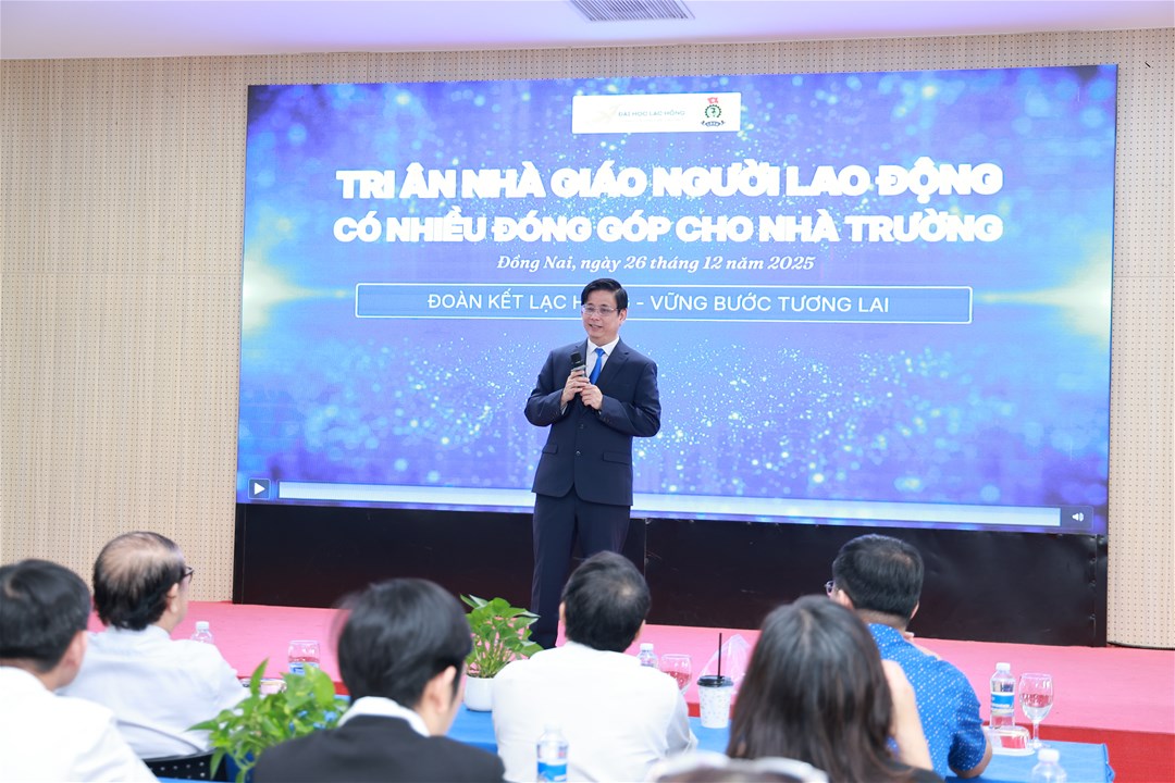 Phát biểu tại buổi lễ, PGS. TS Lâm Thành Hiển – Hiệu trưởng Trường Đại học Lạc Hồng bày tỏ sự trân trọng và tri ân sâu sắc đối với những đóng góp của đội ngũ NGNLĐ; đồng thời mong muốn tập thể cán bộ, giảng viên, nhân viên tiếp tục phát huy truyền thống đoàn kết, đồng hành cùng Nhà trường hoàn thành tốt các nhiệm vụ trong giai đoạn phát triển tiếp theo.