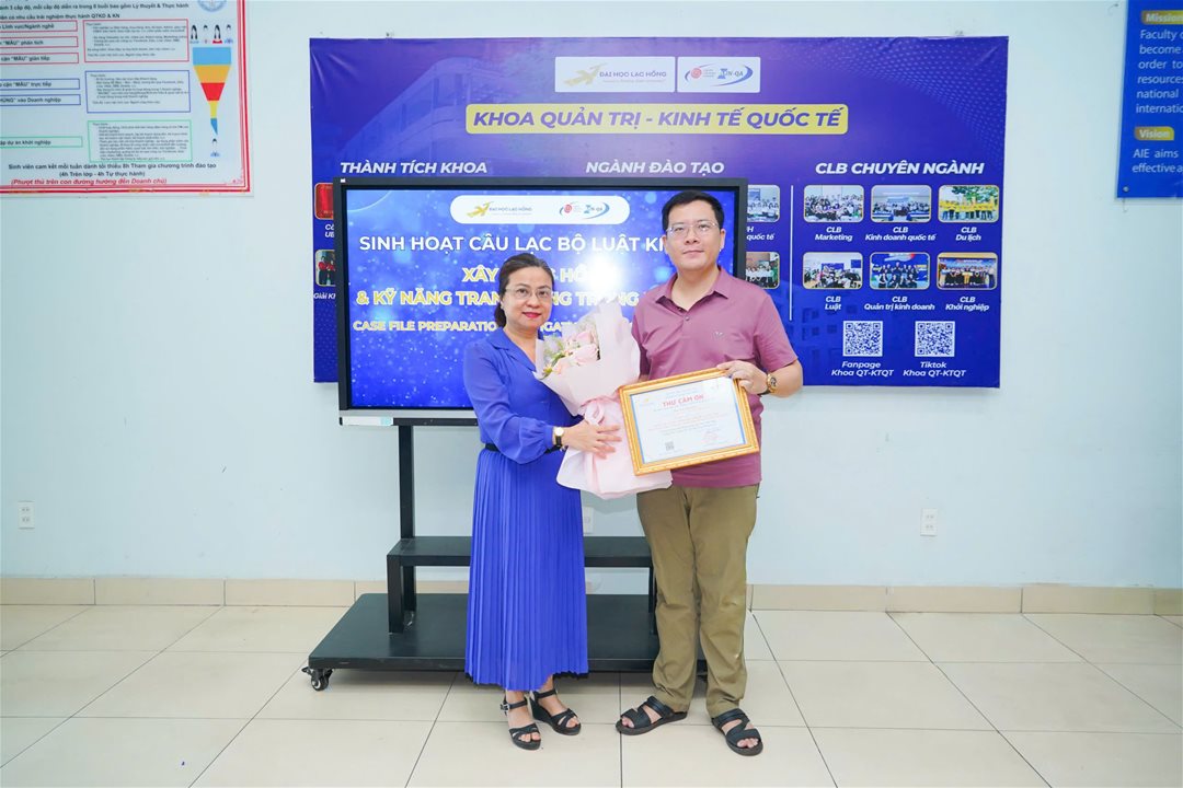 ThS. Huỳnh Thị Như Hiếu - Trưởng Bộ môn Luật Kinh doanh - Thương mại tri ân đến diễn giả