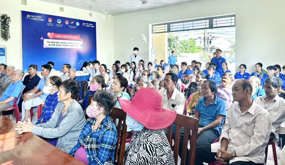 On August 18, 2024, the LHU Student Union, in collaboration with Long Chau Pharmacy, the Vinh Cuu District Young Doctors Club, and the Thien Tan Commune Youth Union, directly organized a humanitarian program offering free medical checkups, medicine, and gifts to 100 vulnerable households in Thien Tan Commune, Vinh Cuu District.