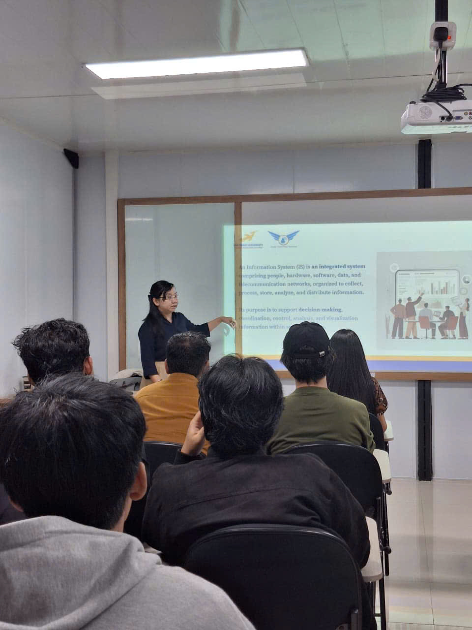 Trong buổi chiều, giảng viên Khoa CNTT – LHU đã thực hiện phiên giảng dạy đầu tiên với chủ đề Enterprise Information System. Nội dung bài giảng tập trung vào cấu trúc hệ thống thông tin doanh nghiệp, các yếu tố ảnh hưởng đến mức độ ứng dụng HTTT tại Việt Nam và quy trình triển khai hệ thống trong tổ chức. Sinh viên ESA Unggul tham gia thảo luận sôi nổi, đặc biệt ở phần so sánh mô hình hệ thống thông tin giữa Indonesia và Việt Nam. Một số tình huống thực tế được trình bày như HTTT của LHU, AI Chatbot, Shopee, TikTok và Lazada.