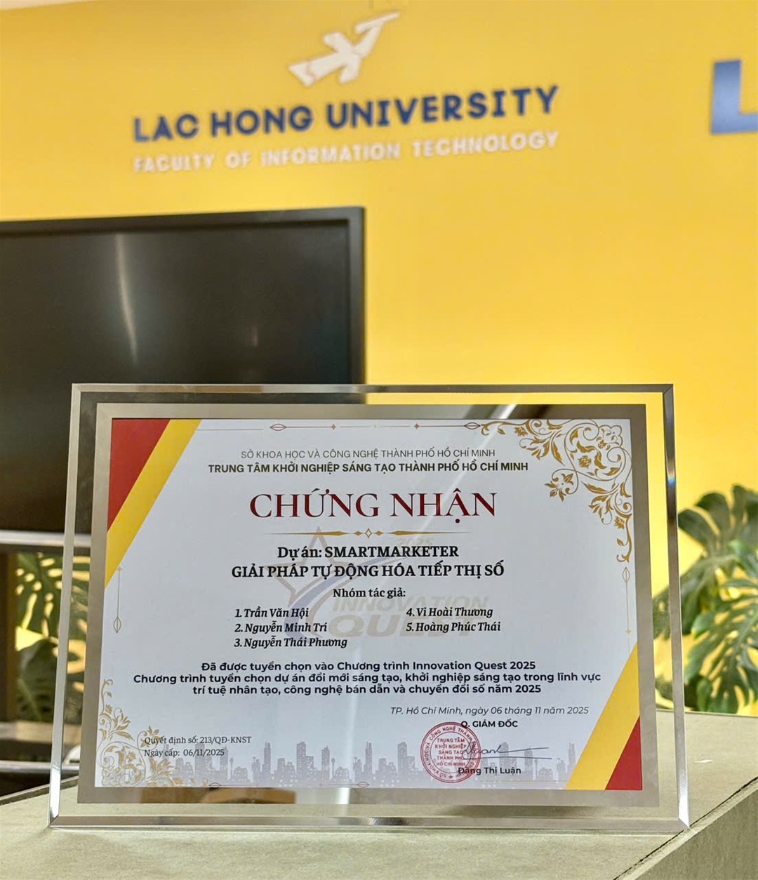 Khoa CNTT Đại học Lạc Hồng xin được chúc mừng thành tích của đội và tin tưởng rằng SmartMarketer sẽ tiếp tục bứt phá mạnh mẽ trong chặng đường phía trước.