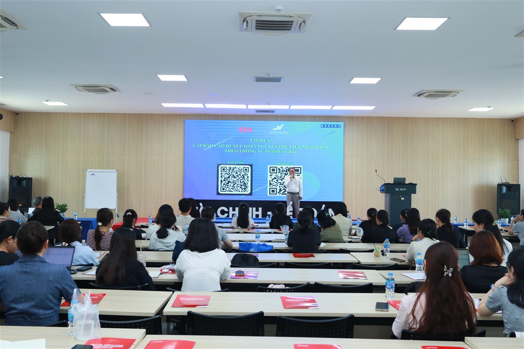 During the presentation, the speaker analyzed new regulations on the finalization of imported materials, and guided students on how to apply legal documents in real business contexts. Participants learned about document processing, data verification, preparation of financial reports, and the application of technology in import–export accounting management.
