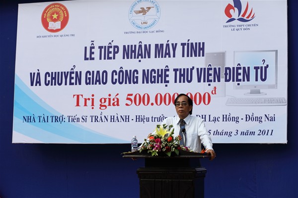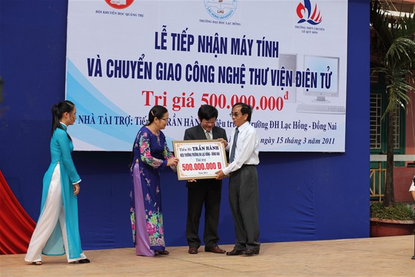 In the morning of 15 March 2010, Dr. Tran Hanh – Rector of Lac Hong University and its teachers visited and presented gifts to Le Quy Don high school in Quang Tri province. The present Lac Hong University offers this time is a e-library management system, 45 LCD computers totaling VND 500 million.