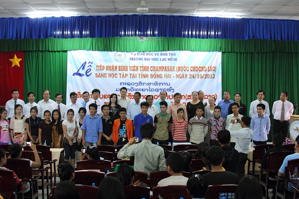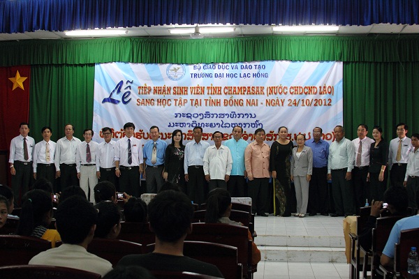 In the morning of October 24, 2012, implementing Dong Nai province Directorate Board’s direction, Lac Hong University organized a ceremony to receive 103 Laotian students coming from Champasak province. Previously, university’s International Relations picked up the Lao delegation at Hoa Lu border gate, Binh Phuoc province. The delegation was accommodated in university’s dorm and it participated in a reception with Dong Nai leaders, Department of Education and Training, university leaders in the afternoon of the same day.