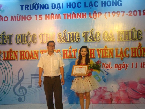 Vu Tran Uyen Phuong has won this year's Lac Hong University Student Singing Contest.