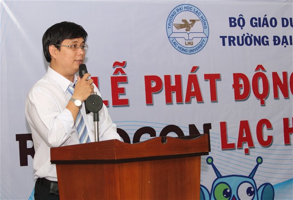 Ending Robocon ABU 2013, Lac Hong University robot teams LH-SEE and LH-EAGLE took second place and third place, respectively at the Asia-Pacific Robot contest. This has urged those who love inventing robots and thirst for conquering this playground to actively participate in the Robocon movement launching ceremony. LHU offers them opportunity to realize their passion by holding a launching ceremony of Robocon 2014 in the morning of September 16. Attending the ceremony was People's Teacher Dr. Do Huu Tai - Chairman of the Trustees Board - Rector; Dr. Nguyen Van Nam - Vice Chairman of Labor Union, Lam Thanh Hien, M.A - Head of Robocon delegation, representatives of department, offices, and centers and a large number of students at all levels.
