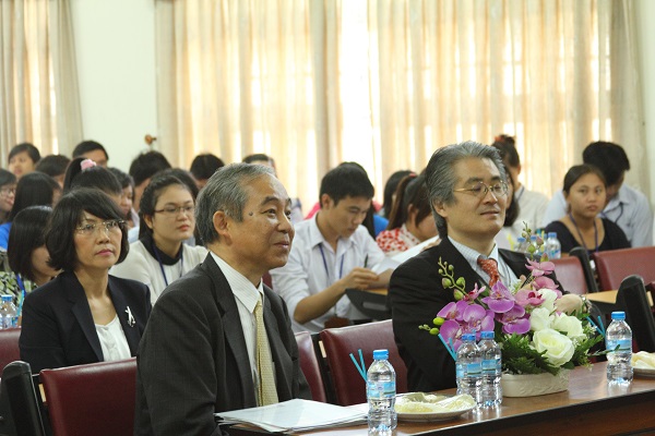 This morning on February 27, LHU in cooperation with the Overseas Human Resources and Industry Development (HIDA) the Ministry of Economy and Trade and Industry (METI) and Japanese businesses co-organized Job Fair firstly in 2014. The event took place at room B 203 (used for reports or presentations of businesses, introducing their products and recruitment notifications) and B 305 (used for exchange program between businesses and students on recruitment needs, human resources developing plan, salary level,.... ). Attending the program was METI's Mr. Goto Yuzo - Director of Technical Cooperation Department; HIDA's Mr. Takeda Sadao - Vice Chairman; Mr. Okita Fumio and Ms. Koganemaru Miyuki - experts of HIDA; LHU's People's Teacher Dr. Do Huu Tai - Rector, Meritorious Teacher Dr. Nguyen Thi Thu Lan - Vice Rector; Lam Thanh Hien, MSc - Vice Rector. The program also attracted 13 Japanese businesses and a large number of senior students.