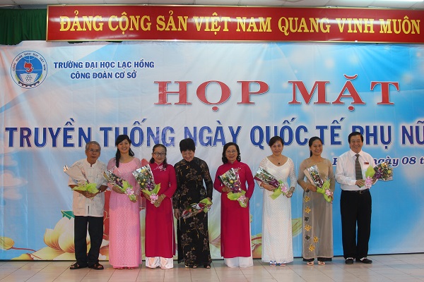 In the morning of March 8, on the occasion of the 104th anniversary of International Women's Day (March 8, 1910 - March 8, 2014), Lac Hong University’s Trade Union specially organized an informal meeting at Meeting hall A 301 to honor and congratulate women staff. The meeting was participated by Secretary of Party Committee Nguyen Trung Phuong; Rector People's Teacher Dr . Do Huu Tai; Chairman of Trade Union Dr. Diep Cam Thu - Vice Rector; Chairman of Dong Nai Union of Science and Technology Associations Meritorious Teacher Dr. Nguyen Thi Thu Lan - Vice Rector and a great number of faculty members and staff.