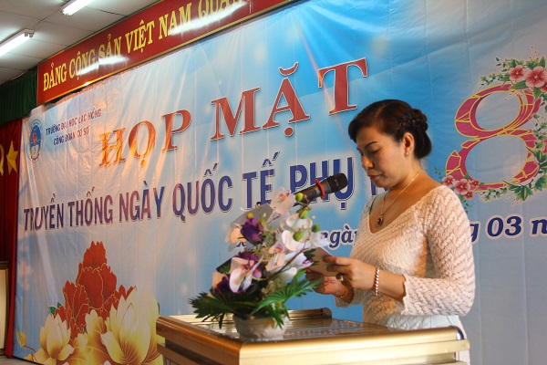 To close the meeting, the University Management Board praised 40 typical women for their great contributions to the development of the University and Trade Union. Through the meeting, the Organizing Board wished to help to speak highly of women's roles in education and training of LHU and speed up the movement "Good at office work, Responsible for household chores" (Gioi viec nuoc, Dam viec nha).