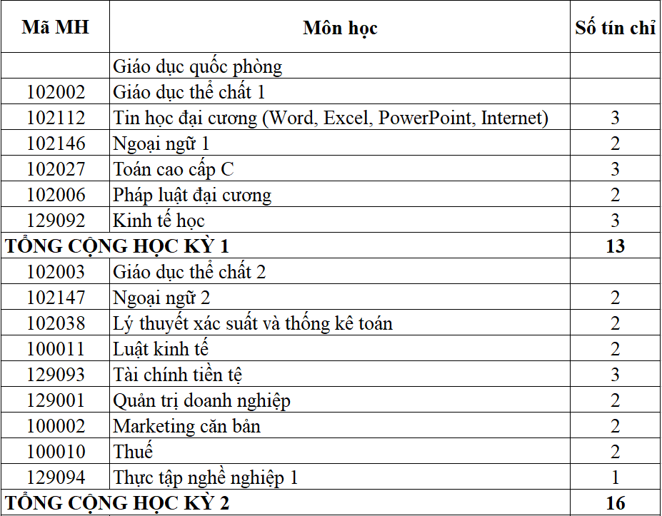 Khoa Tài chính Kế toán  »  Chương trình đào tạo