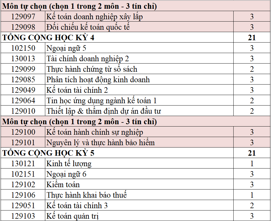 Chương trình đào tạo ngành Kế toán (niên khóa 2025-2029)