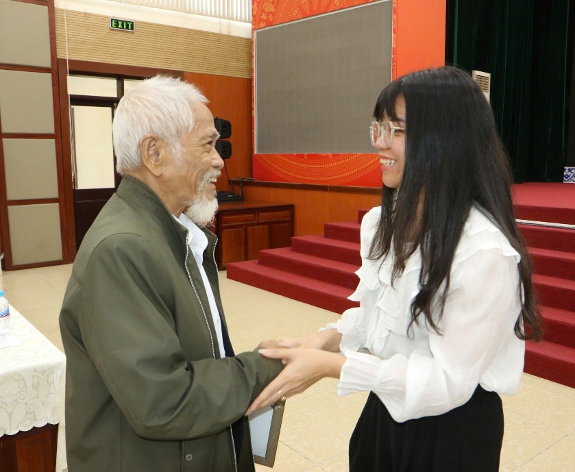 Sinh viên Đào Thị Kim Dung và Ông Nguyễn Trí Dũng đại diện gia đình nhà tài trợ