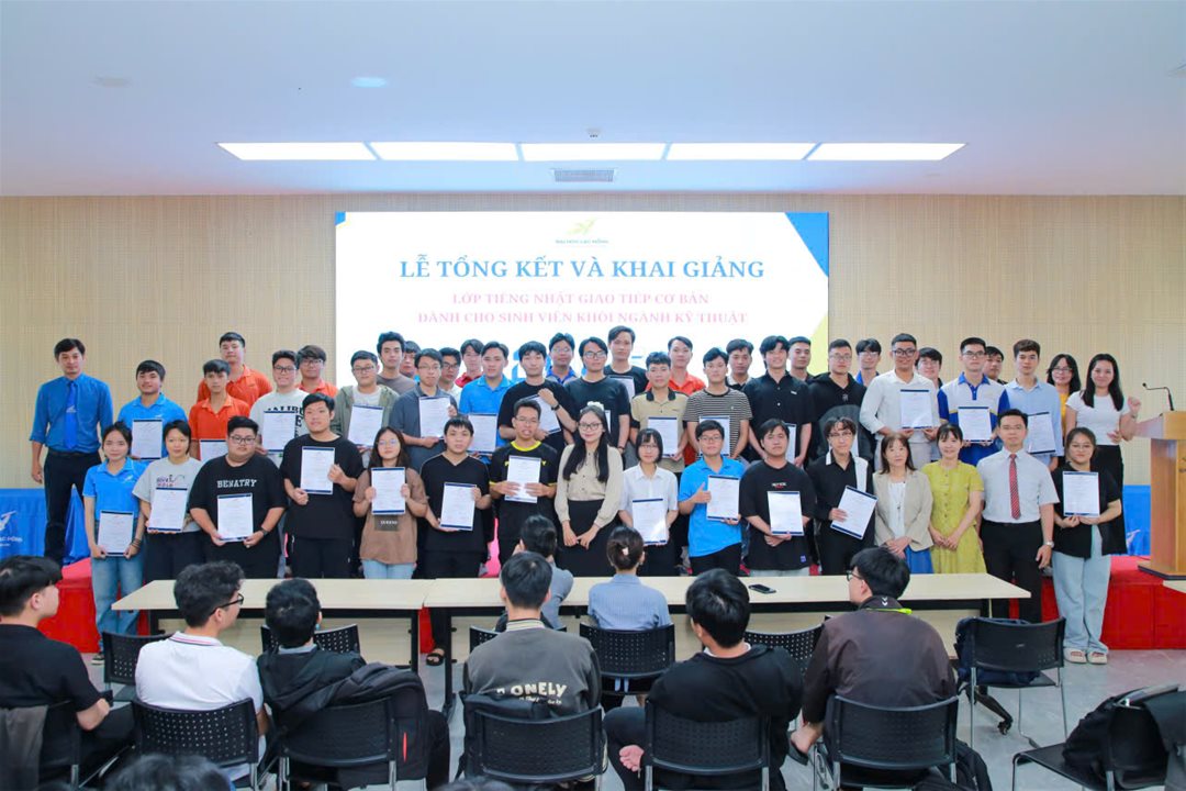 Trường Đại học Lạc Hồng đã long trọng tổ chức Lễ trao giấy chứng nhận hoàn thành Khóa 11 (năm học 2024–2025)Khai giảng Khóa 12 (năm học 2025–2026) lớp Tiếng Nhật giao tiếp cơ bản dành cho sinh viên các khoa khối ngành kỹ thuật.