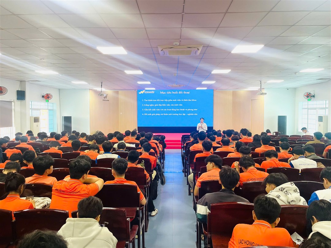 Không chỉ dừng lại ở việc lắng nghe, buổi đối thoại còn là nơi để Ban Lãnh đạo cung cấp những thông tin quan trọng về chủ trương, chính sách, quyền lợi và trách nhiệm của sinh viên trong quá trình học tập, rèn luyện tại Trường. Nhiều câu hỏi liên quan đến chương trình học, học phí, lịch học, điều kiện tốt nghiệp hay các quy định trong thực hiện đồ án môn học đã được giải đáp cụ thể, rõ ràng. Điều này không chỉ giải tỏa thắc mắc, mà còn tạo thêm động lực, sự yên tâm cho sinh viên trên hành trình chinh phục tri thức.