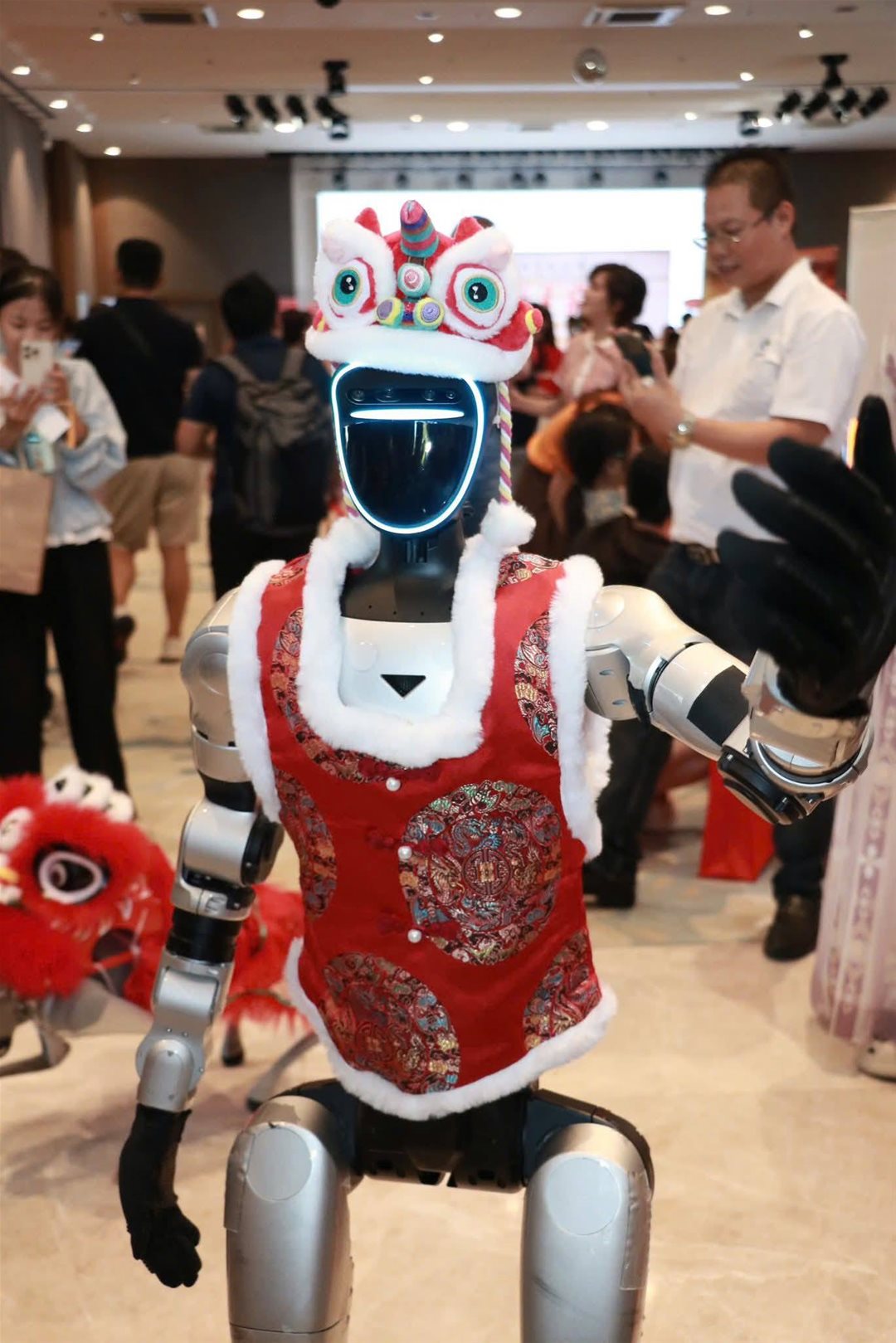A robot dressed in a Lion Dance costume