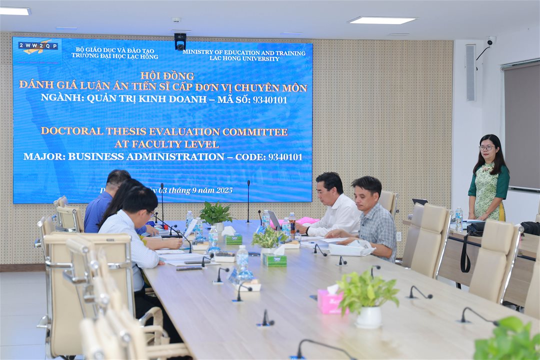 On September 3, 2025, at the meeting hall of Campus 1, Lac Hong University, the Faculty of Postgraduate Studies organized the Doctoral Dissertation Defense Council at the departmental level in Business Administration for doctoral candidate Le Viet Anh.